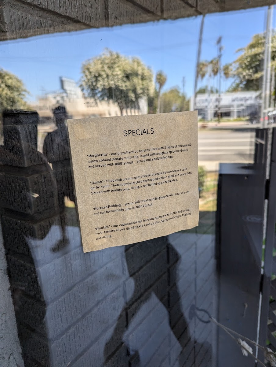 Borekas Sephardic Pastries in Sherman Oaks invites you on a flavorful journey with its expertly crafted, flaky borekas that celebrate Sephardic tradition. The menu shines with savory options like the classic Cultured Cheese & Za’atar, pairing creamy cheese with aromatic za’atar, and the simple yet luscious Potato & Brown Butter borekas. Each comes with vibrant sides including tangy tomato pulp, spicy schug, soft boiled egg, and pickles, balancing richness and zest perfectly. For those craving sweetness, the warm Chocolate Borekas and Borekas Bread Pudding offer comforting, indulgent finishes enhanced by vanilla yogurt dip or olive oil toffee glaze.